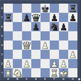 La Dame attaque deux pièces simultanément. Les Blancs gagnent soit un Fou, soit un Cavalier.