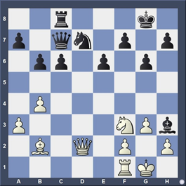 1. Dxg7 Rxg7 2.Ce8+ Rg8 3.Cxd6, gagne